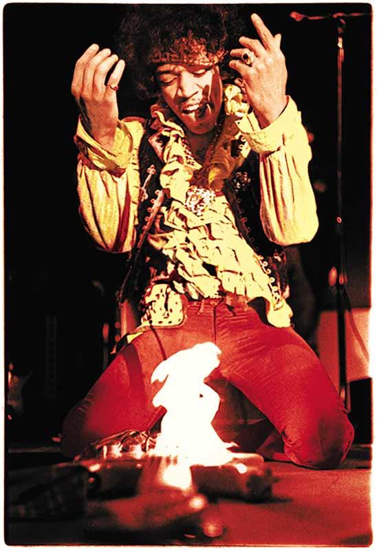 In one of those simple twists of fate, standing in the front row of the audience was a 17 year old kid named Ed Caraeff who was, in the parlance of the times, a “camera buff”. Caraeff had no idea who Hendrix was and had never heard his music. But he was front and center with a camera. After three days of shooting, however, he was running low on film. He had only a few shots left on the roll and he took them of Hendrix burning his guitar. His shot (below) made history and has become one of the most iconic images in Rock and Roll. Caraeff was, at that very moment, launched into a wildly successful career as a photographer and graphic designer. He went on to photograph and design more than 400 record album covers. His work has been inducted into the Rock and Roll Hall of Fame.